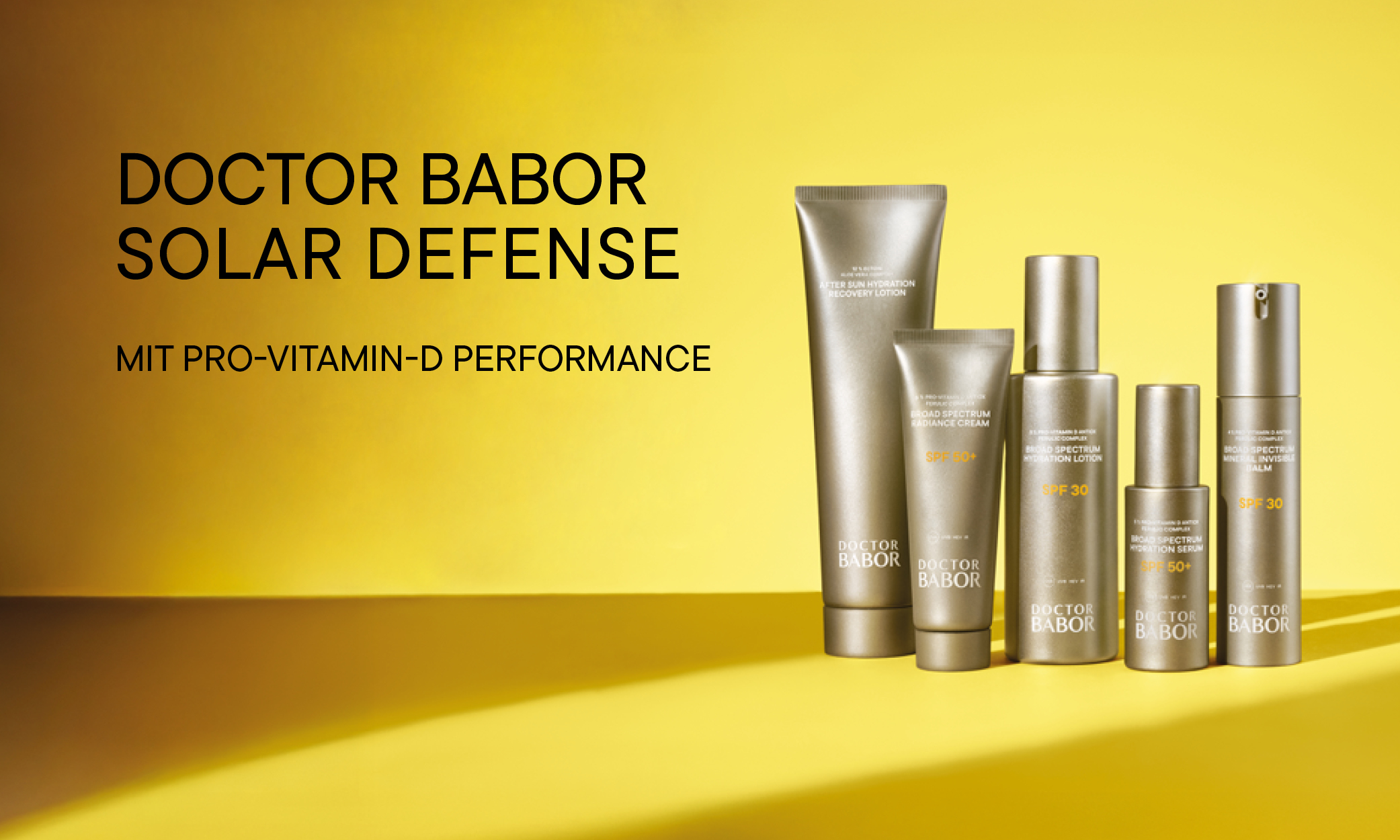 Sonnenschutz neu gedacht: Die DOCTOR BABOR SOLAR DEFENSE Linie bietet ein durchdachtes Pflegesystem mit abgestimmten Texturen und ausgewählten Wirkstoffkomplexen.